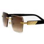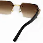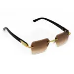 Sleek and commanding rectangular rimless glasses with a medium fit, featuring precision-cut lenses and ebony wood temples.
